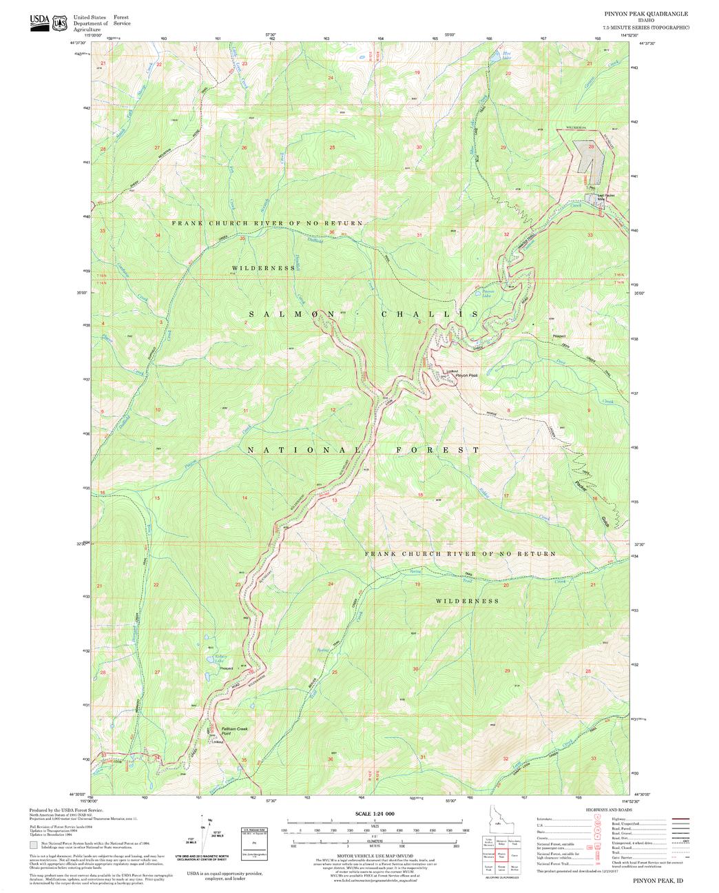 United States Department of Agriculture Forestry Service topographical map of Pinyon Peak, Salmon-Chalis National Forest, Idaho.