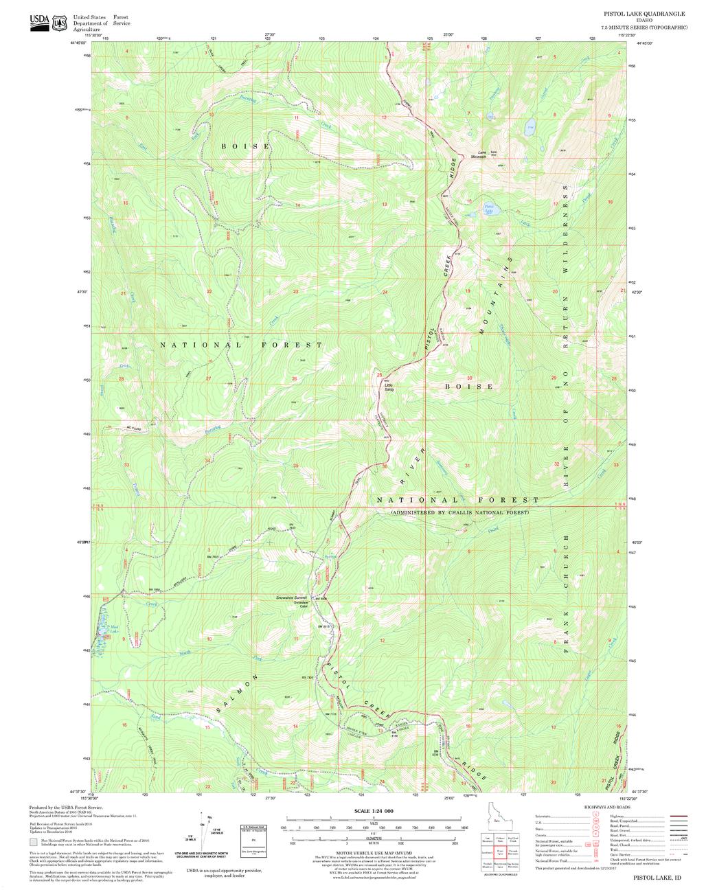 United States Department of Agriculture Forestry Service topographical map of Pistol Lake, Salmon-Chalis National Forest, Idaho.