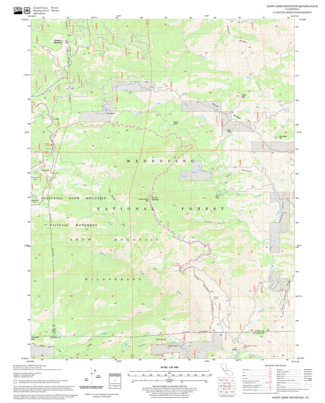 United States Department of Agriculture Forestry Service topographical map of Saint John Mountain, Mendocino National Forest, California.