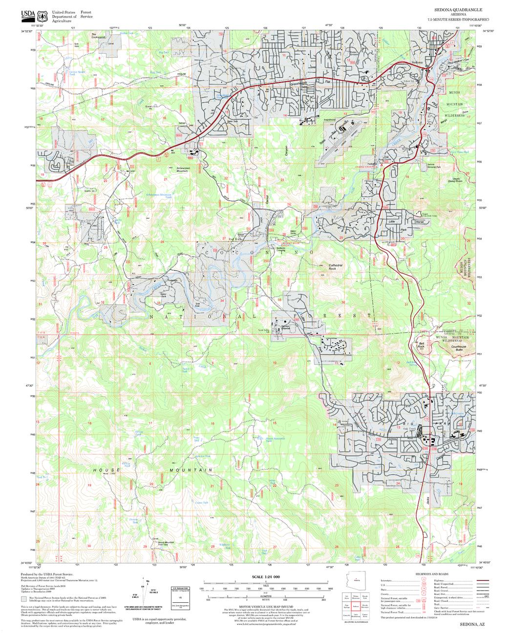 United States Department of Agriculture Forestry Service topographical map of Sedona, Coconino National Forest, Arizona.