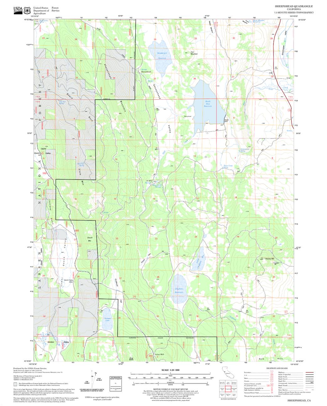 United States Department of Agriculture Forestry Service topographical map of Sheepshead, Lassen National Forest, California.