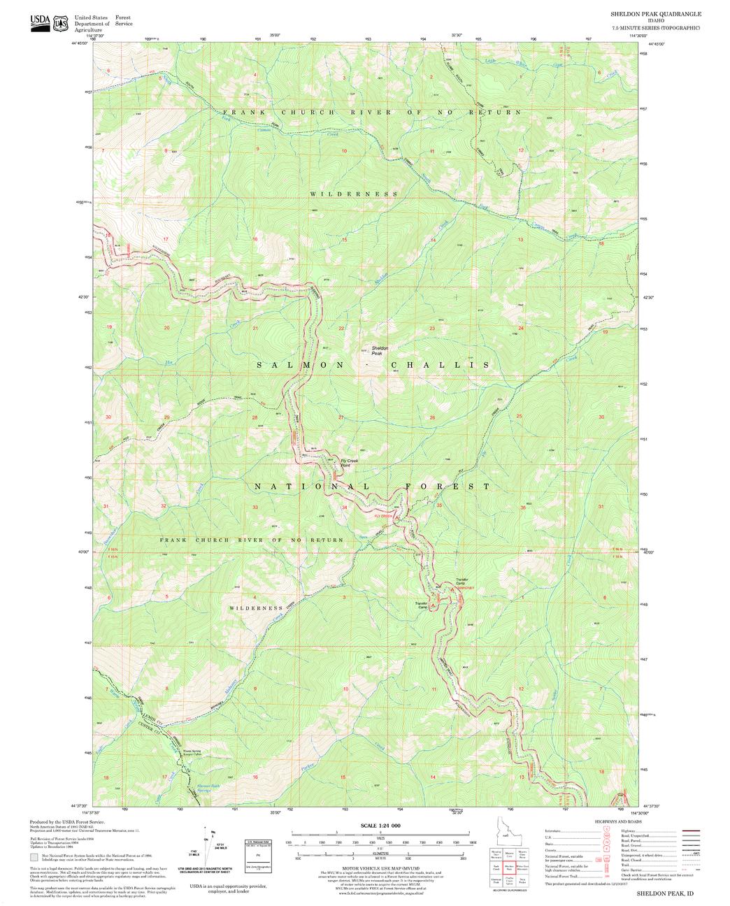 United States Department of Agriculture Forestry Service topographical map of Sheldon Peak, Salmon-Chalis National Forest, Idaho.