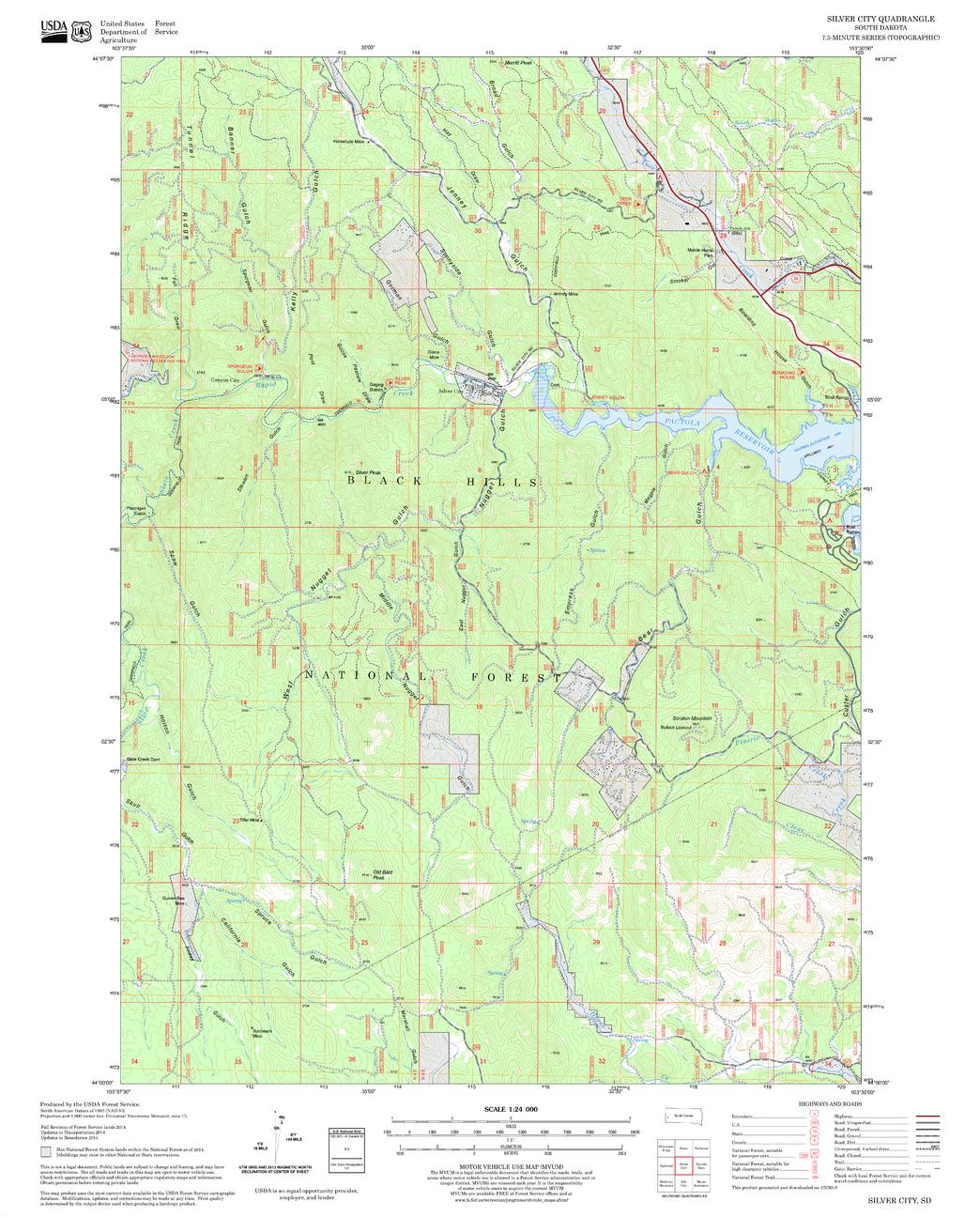 United States Department of Agriculture Forestry Service topographical map of Silver City, Black Hills National Forest, South Dakota.
