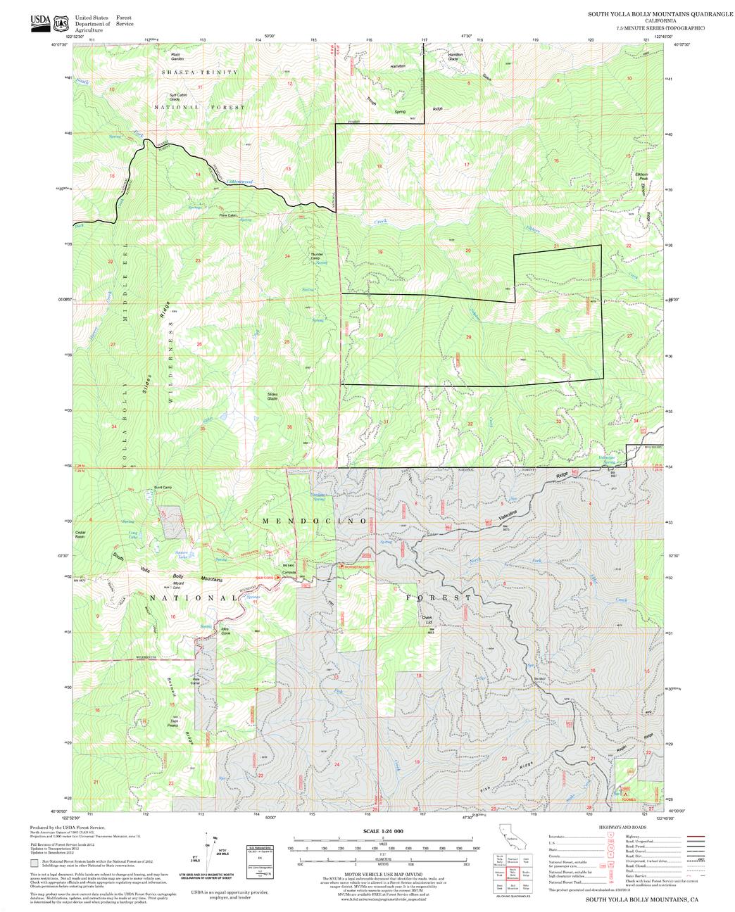 United States Department of Agriculture Forestry Service topographical map of South Yolla Bolly Mountains, Mendocino National Forest, California.
