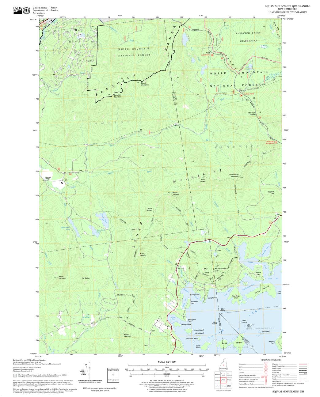 United States Forestry Service topographical map of Squam Mountains, New Hampshire-Vermont