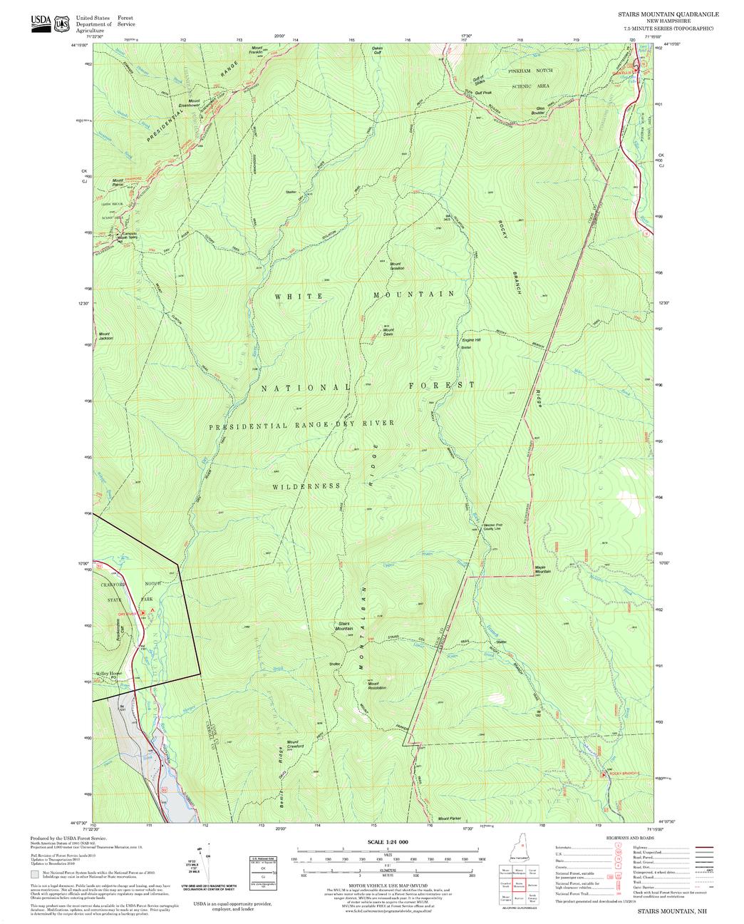 United States Forestry Service topographical map of Stairs Mountain, New Hampshire-Vermont