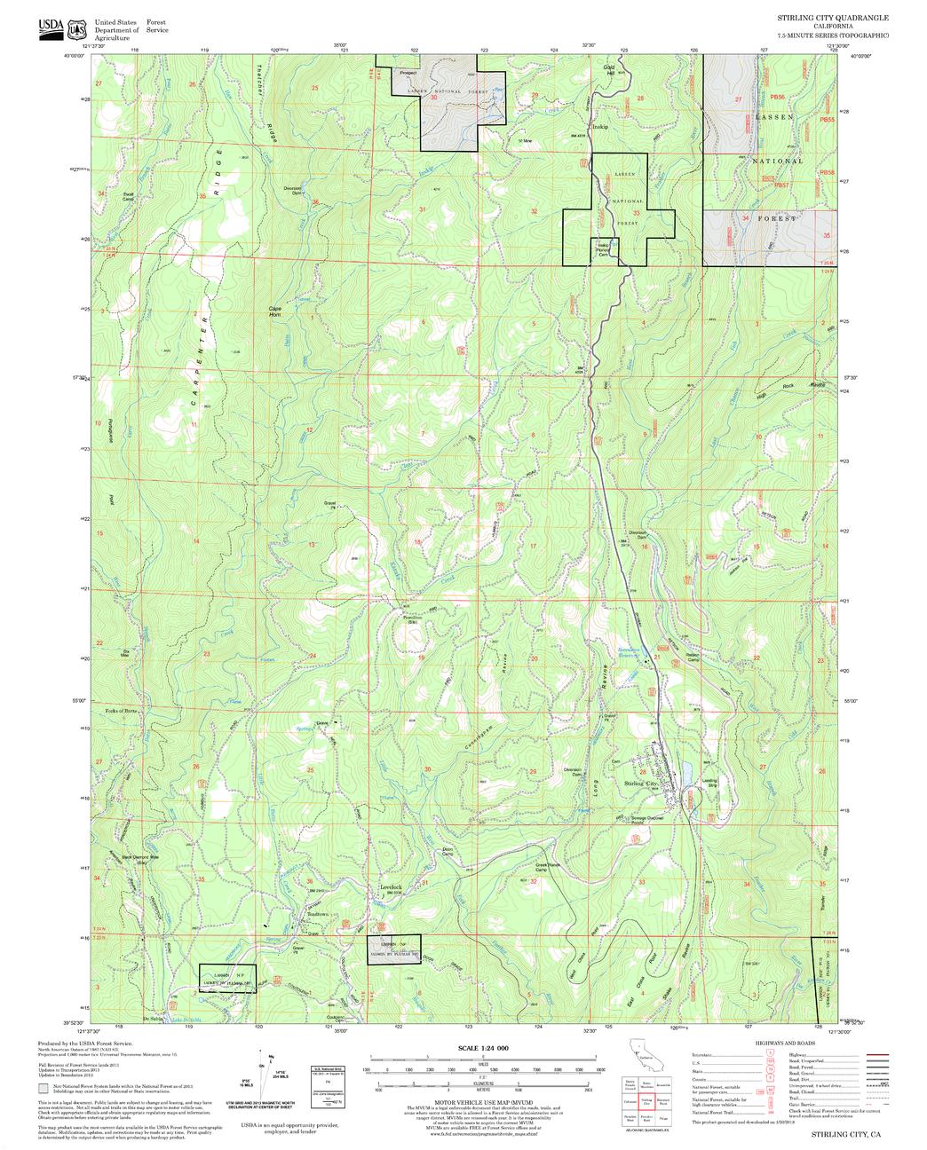 United States Department of Agriculture Forestry Service topographical map of Stirling City, Lassen National Forest, California.