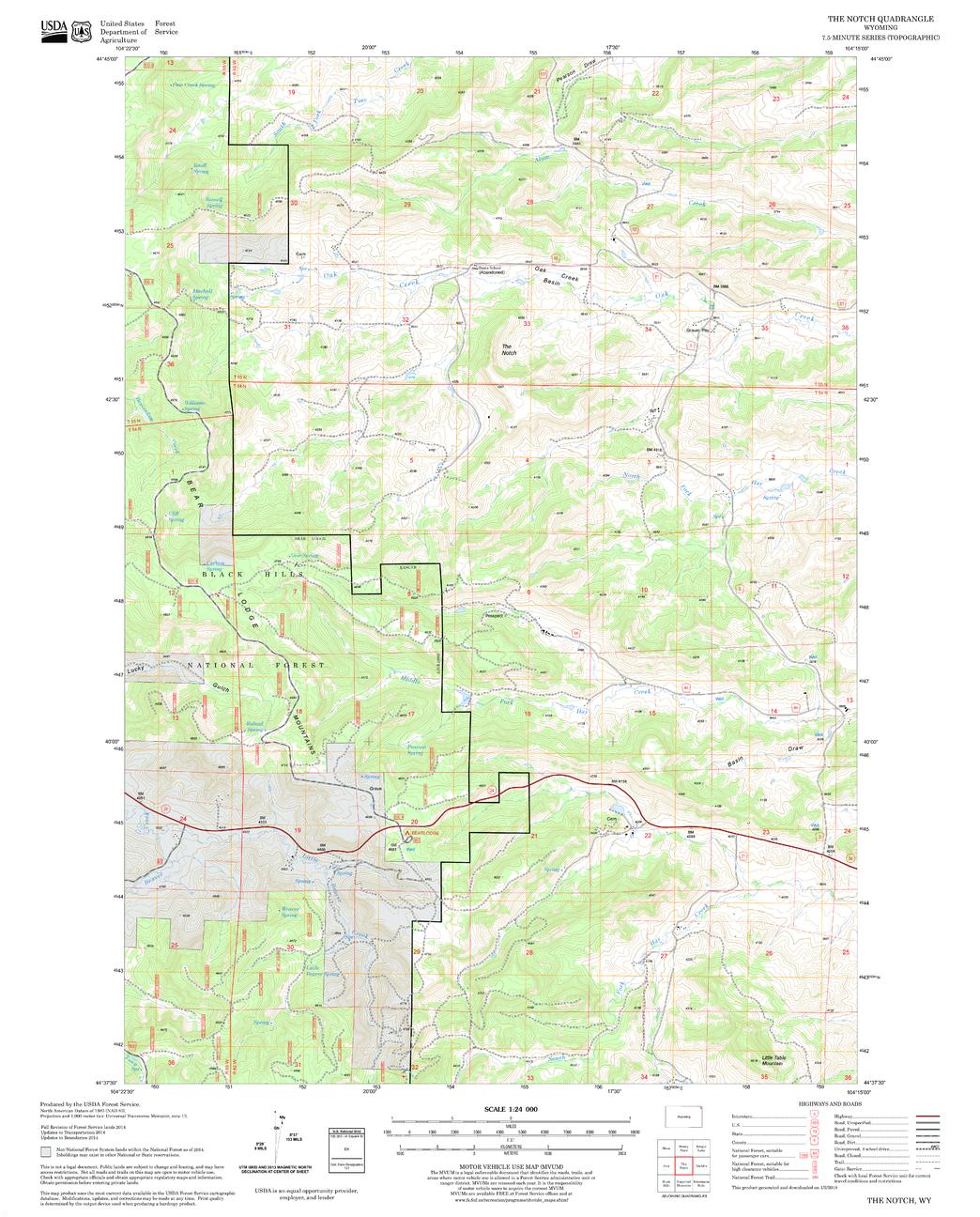 United States Department of Agriculture Forestry Service topographical map of The Notch, Black Hills National Forest, South Dakota.