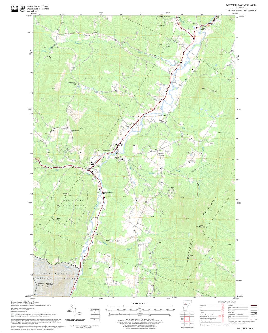 United States Forestry Service topographical map of Waitsfield, New Hampshire-Vermont