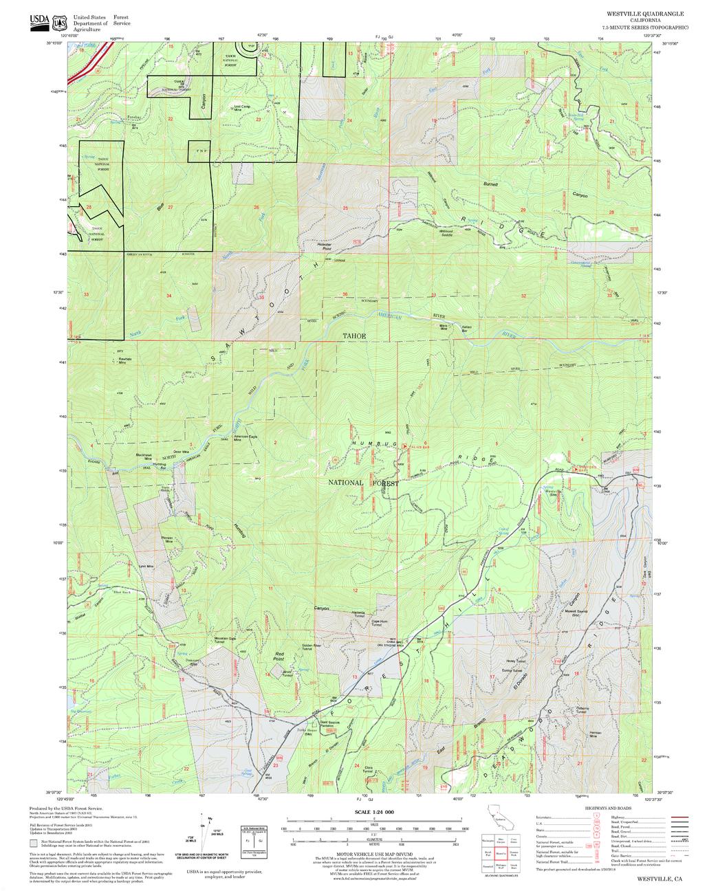 United States Department of Agriculture Forestry Service topographical map of Westville, Tahoe National Forest, California.