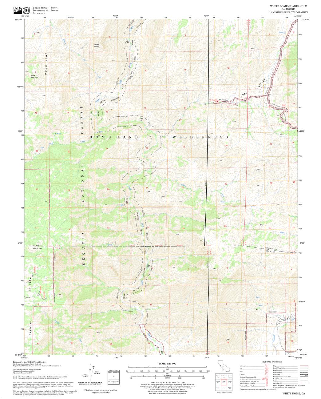 United States Department of Agriculture Forestry Service topographical map of White Dome, Sequoia National Forest, California.