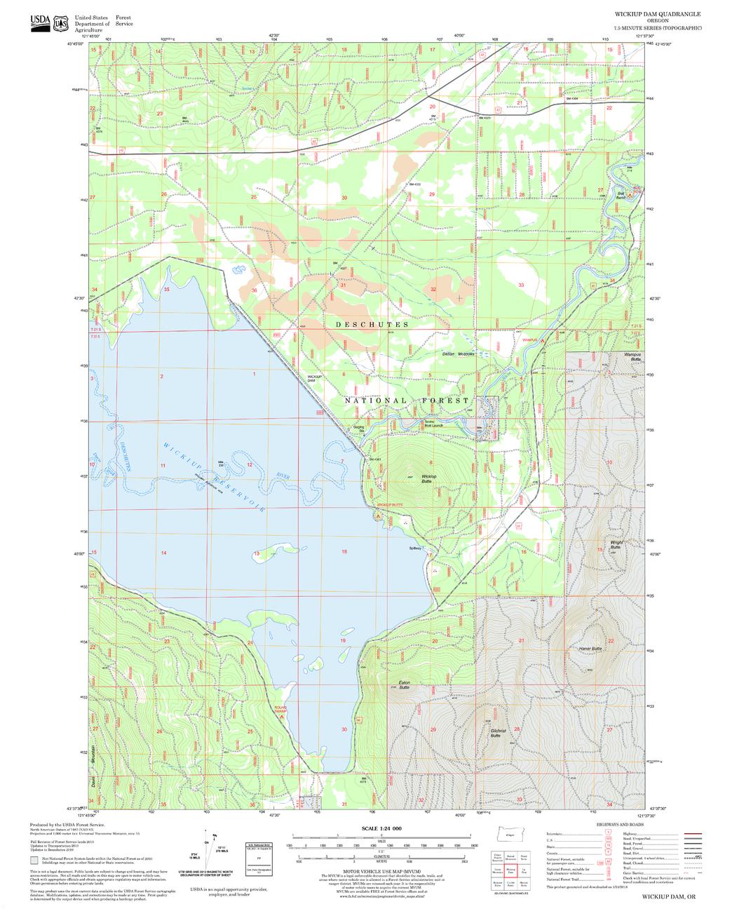 United States Department of Agriculture Forestry Service topographical map of Wickiup Dam, Deschutes National Forest, Oregon.