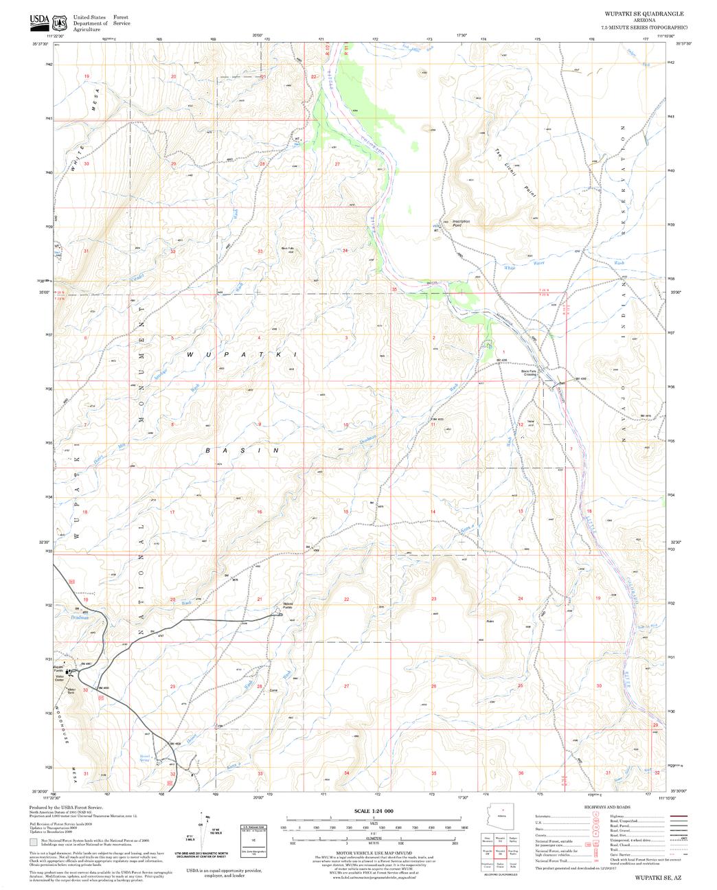 United States Department of Agriculture Forestry Service topographical map of Wupatki SE, Coconino National Forest, Arizona.