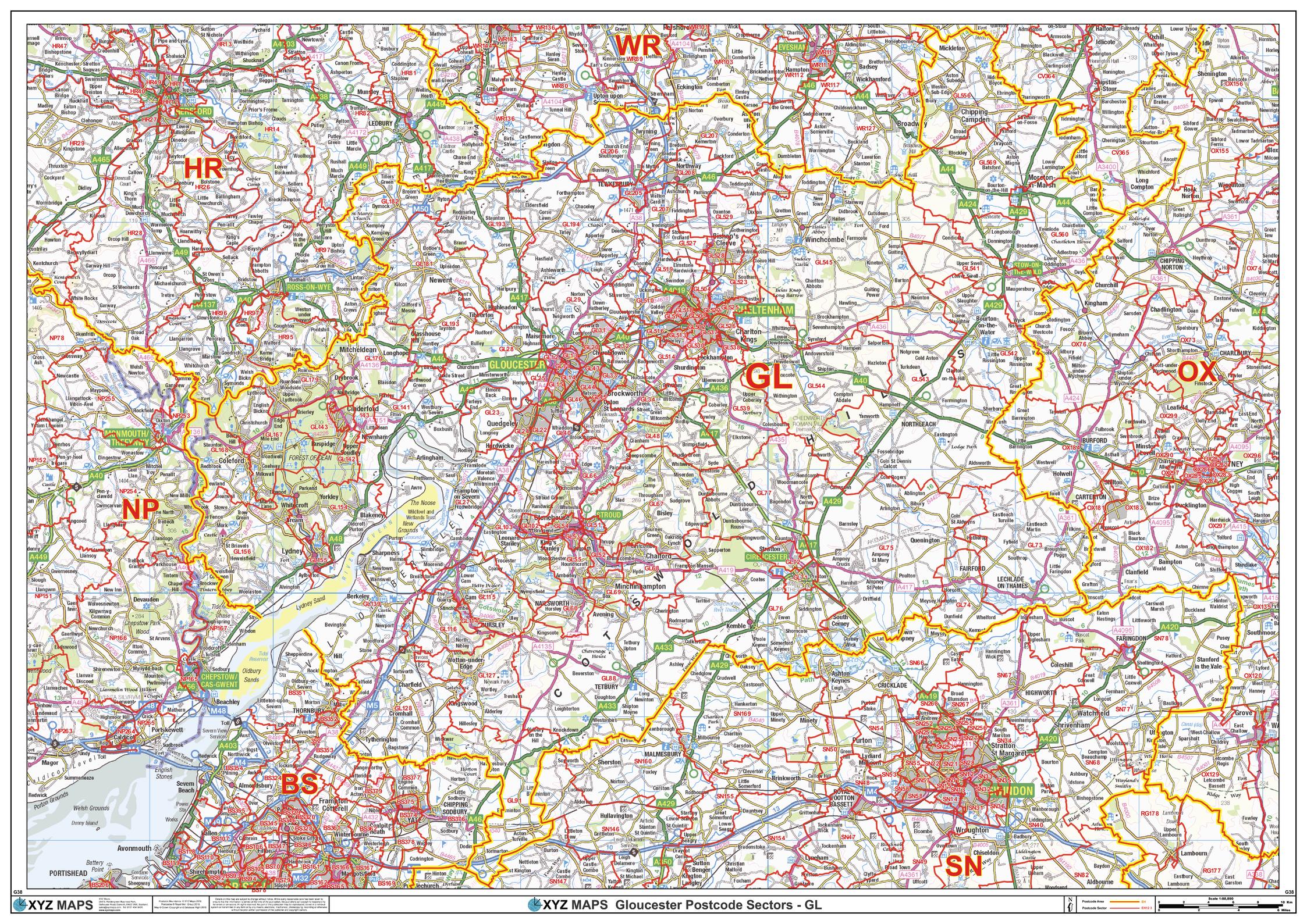 The Gloucester Postcode Sector Wall Map shows detailed postcode sector boundaries (GL1 1, GL1 2) on a comprehensive background and is perfect for determining postcode boundaries for sales areas, planning mailshots and also an excellent reference for logistics. This wall map covers the whole of the GL Postcode Area.