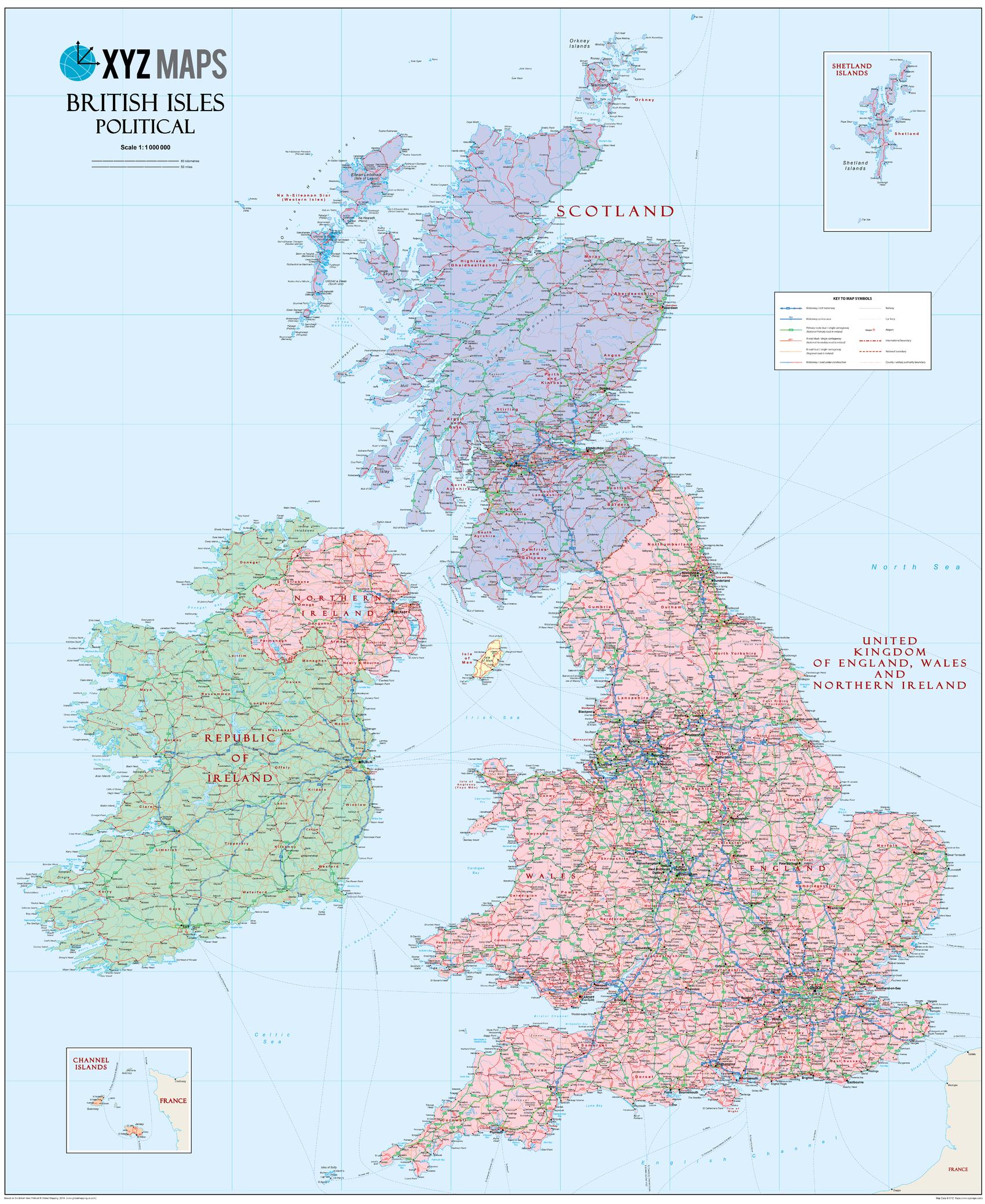 The Scottish British Isles Political wall map is ideal for the office or educational environment. This unique Scottish British Isles map features political colouring showing the Counties of the United Kingdon of England, Wales & Northern Ireland (rUK), Scotland and Ireland. All major Towns, Roads, Rivers and Lakes are shown on this map. This map shows the British Isles as they would appear if Scotland became independent. If you are a YES supporter in favour of independence for Scotland then this is the map for you!